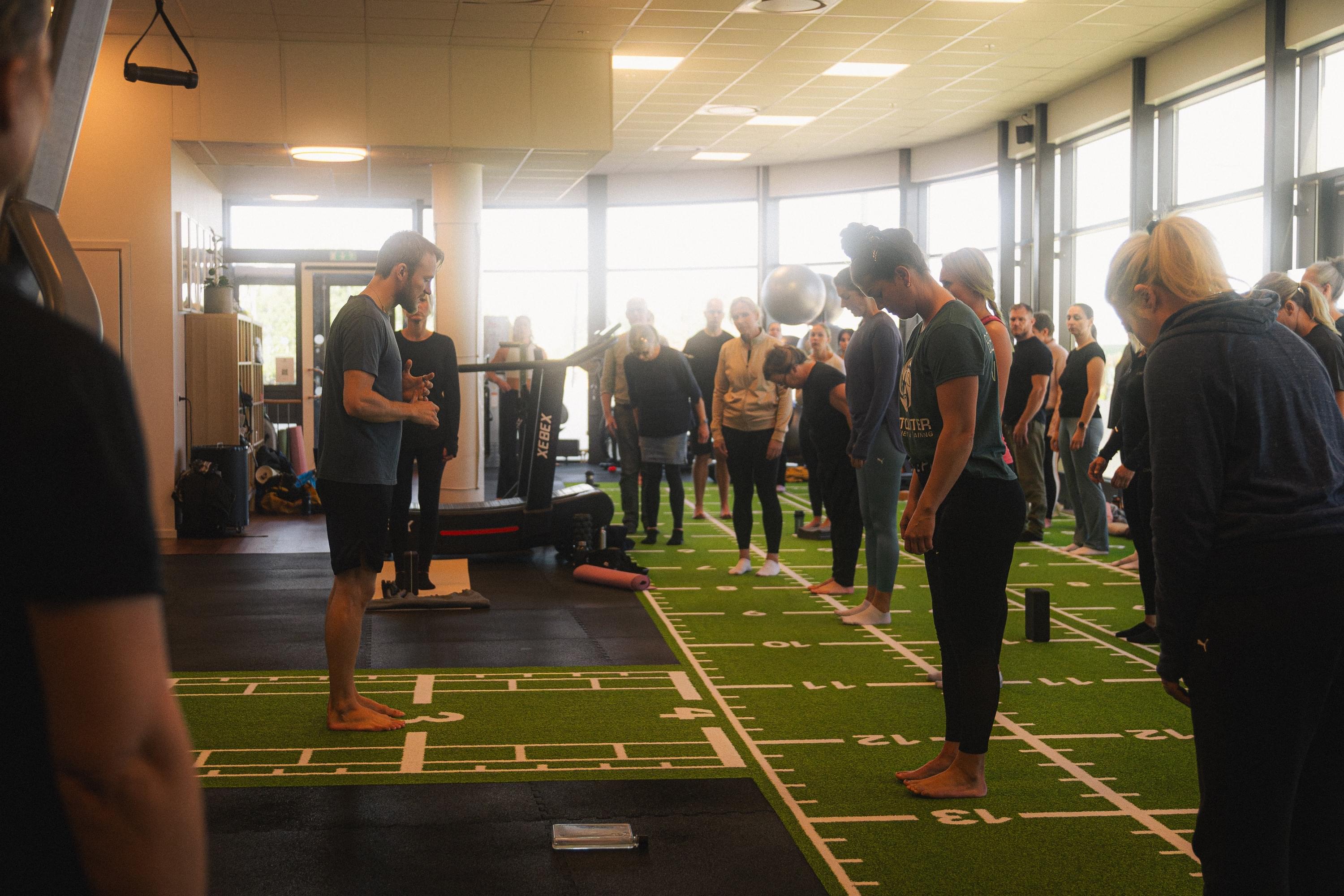 En lugn start med en kort andningsövning eller mindfulness för att hjälpa deltagarna att landa i nuet.